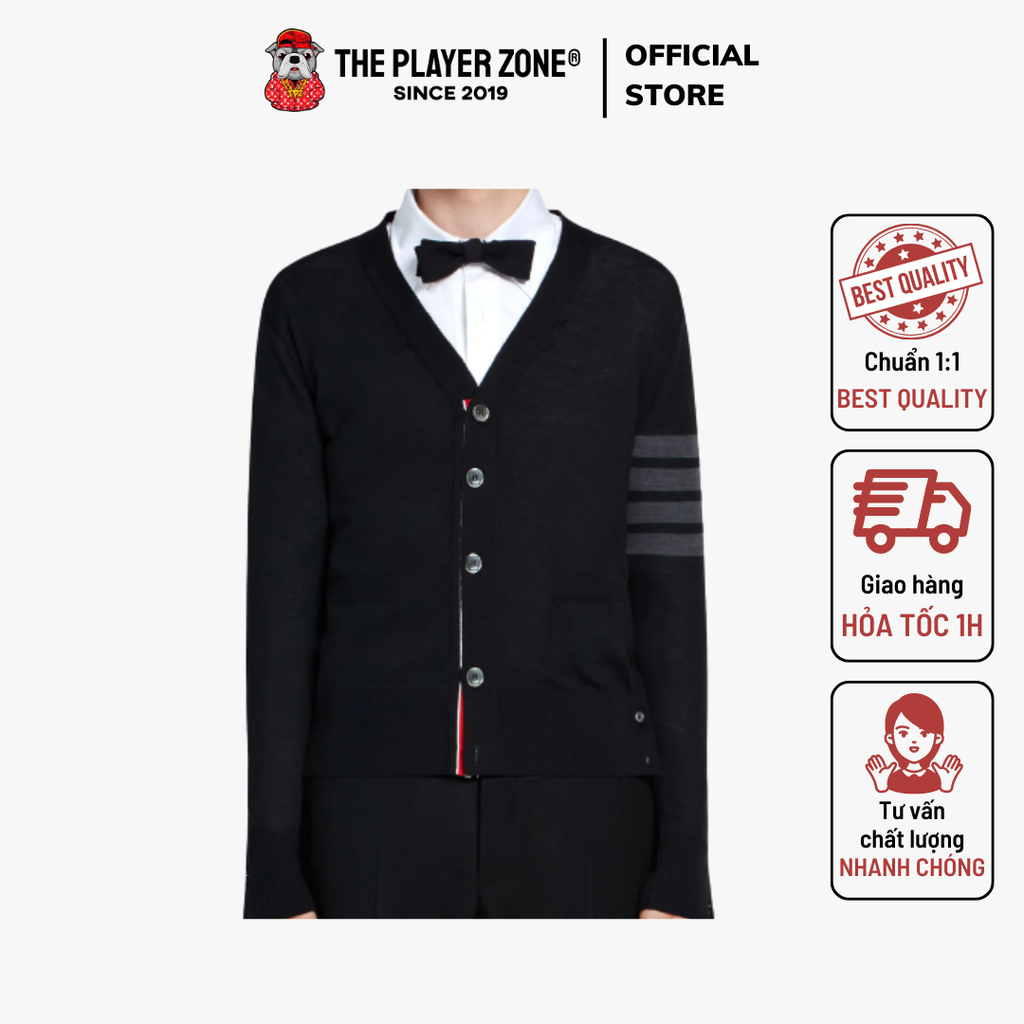 Áo Cardigan Thom Browne Black Fine Merino Wool V-Neck 4 Bar (Black) The Player Zone