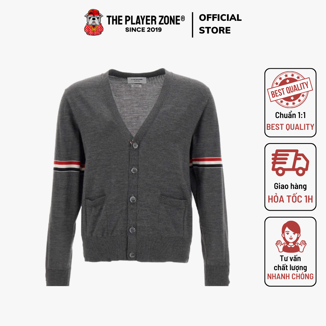 Áo Cardigan Thom Browne [Merino] RWB Armbands (Gray) The Player Zone