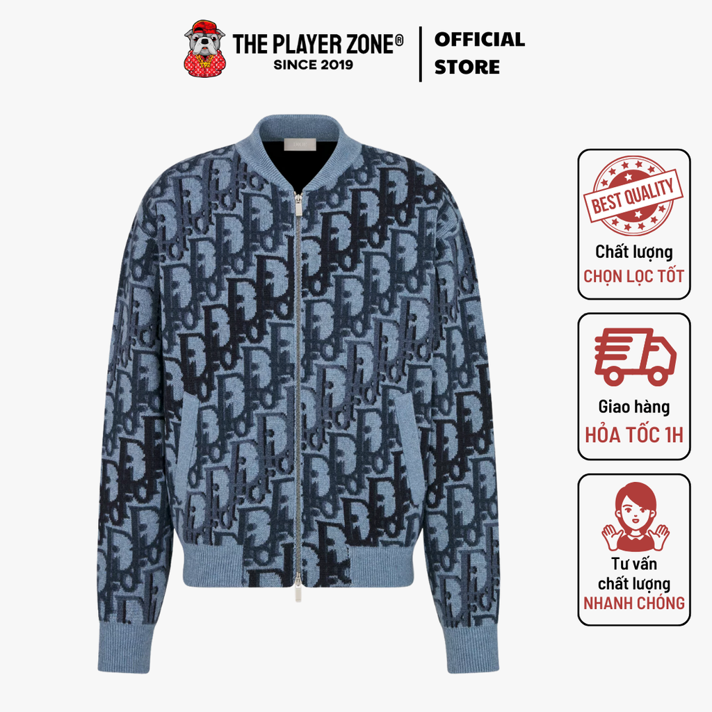 Áo Khoác Dior Oblique Blouson Jacket Blue Wool Knit - Blue The Player Zone