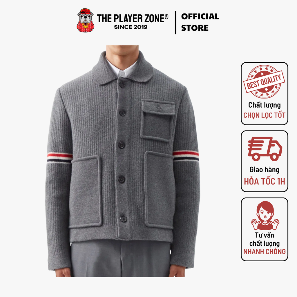 Áo Khoác Thom Browne Tricolour-Stripe Ribbed-Wool Jacket - Xám The Player Zone