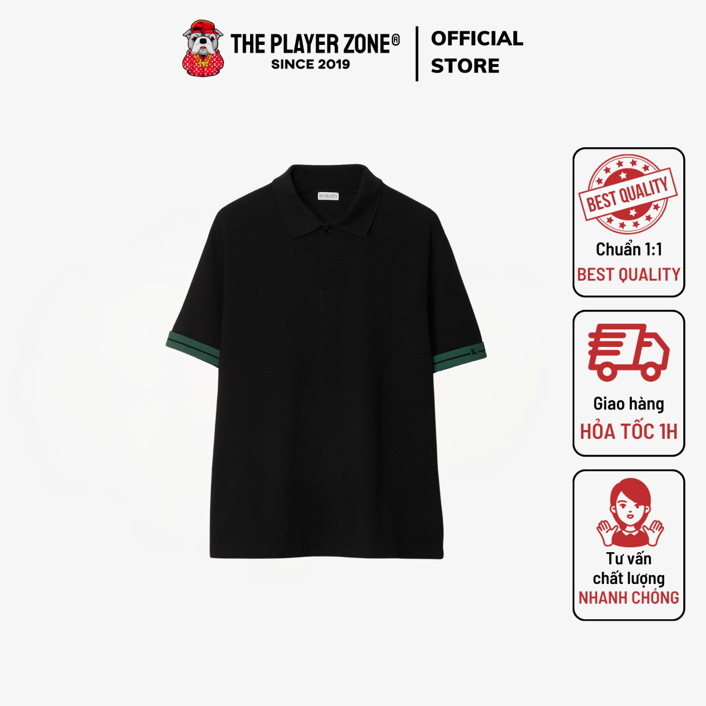 Áo Polo Burberry Striped-Cuffs Polo Tee in Black - Đen The Player Zone
