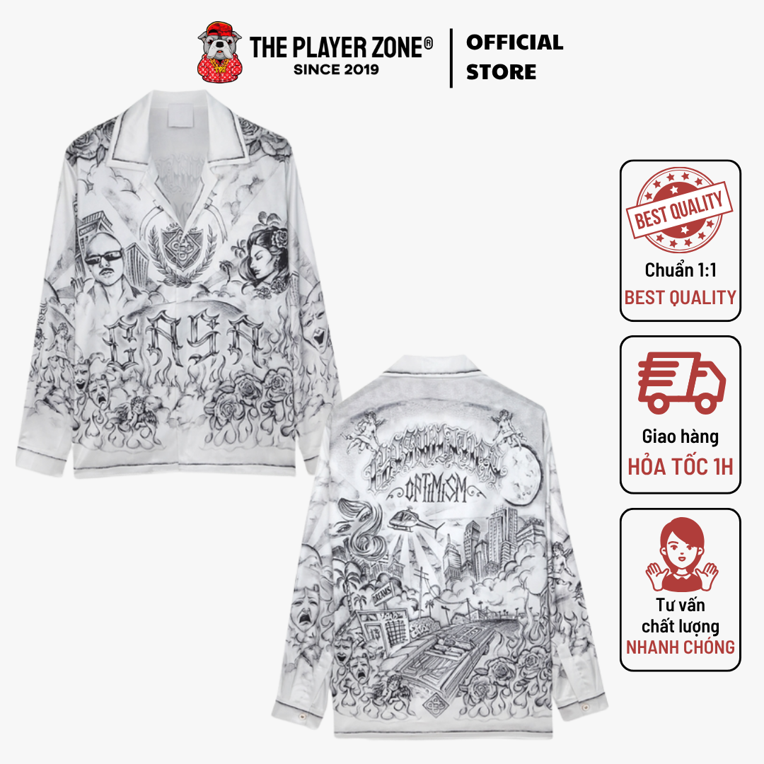 Áo Sơ Mi Casa Tattoo Long Sleeve Shirt Grey - Xám Trắng The Player Zone
