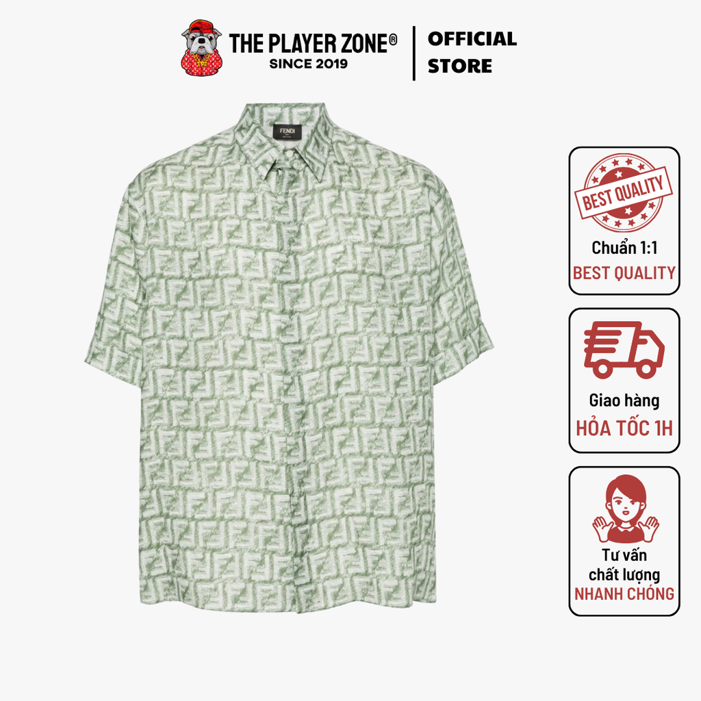 Áo Sơ Mi FENDI FF-motif linen shirt - Green The Player Zone