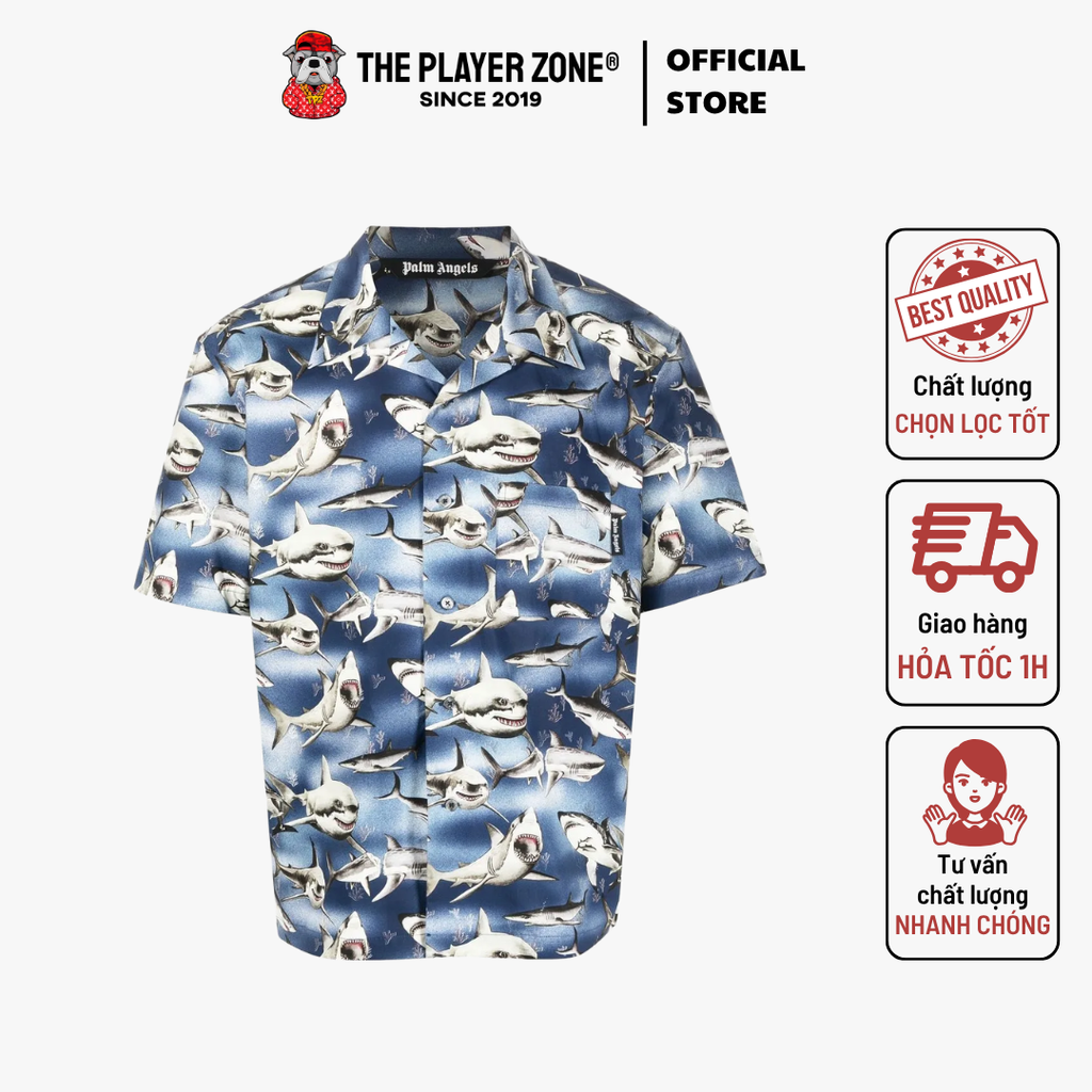 Áo Sơ Mi Palm Angels Sharks-Print Bowling Shirt The Player Zone
