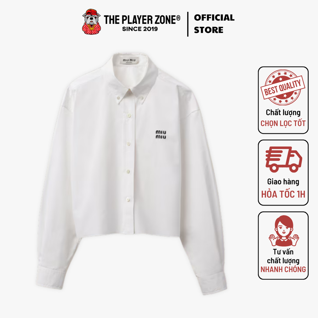 Áo Sơ Miu Miu White Cotton Poplin Cropped Shirt - Trắng The Player Zone