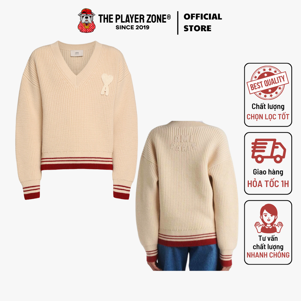 Áo Sweater Ami Paris Navy Wool Ribbed V Neck - Be The Player Zone