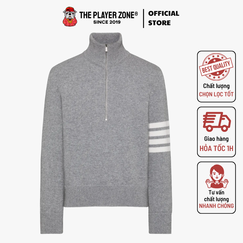 Áo Sweater Thom Browne 4-Bar funnel-neck Wool - Grey The Player Zone