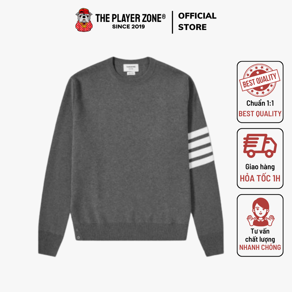 Áo Sweater Thom Browne Milano Stitch 4-Bar Crewneck Pullover Check Code (Gray) The Player Zone