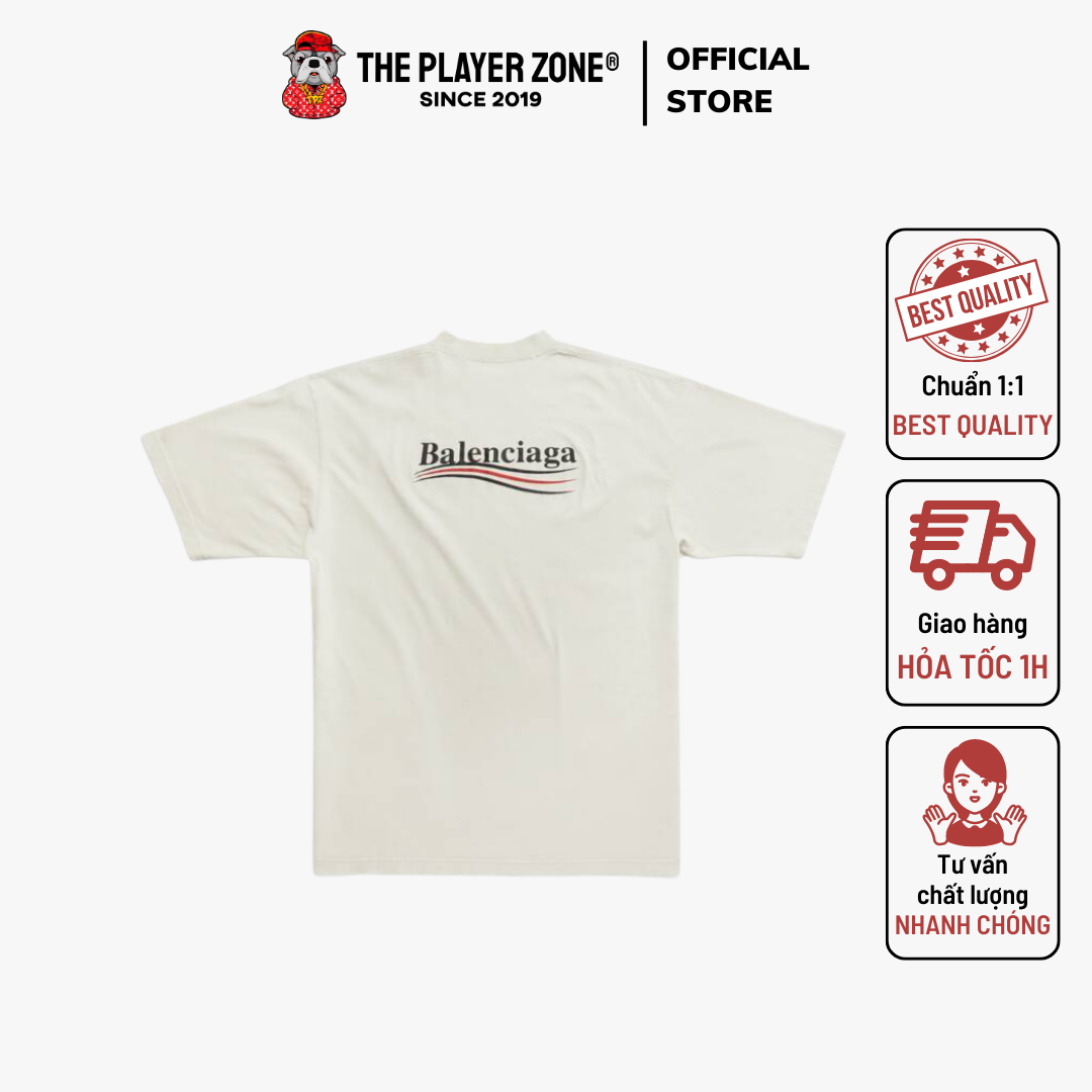Áo Thun Balenciaga Political Campaign Best Quality (Off-White/Check Code) The Player Zone