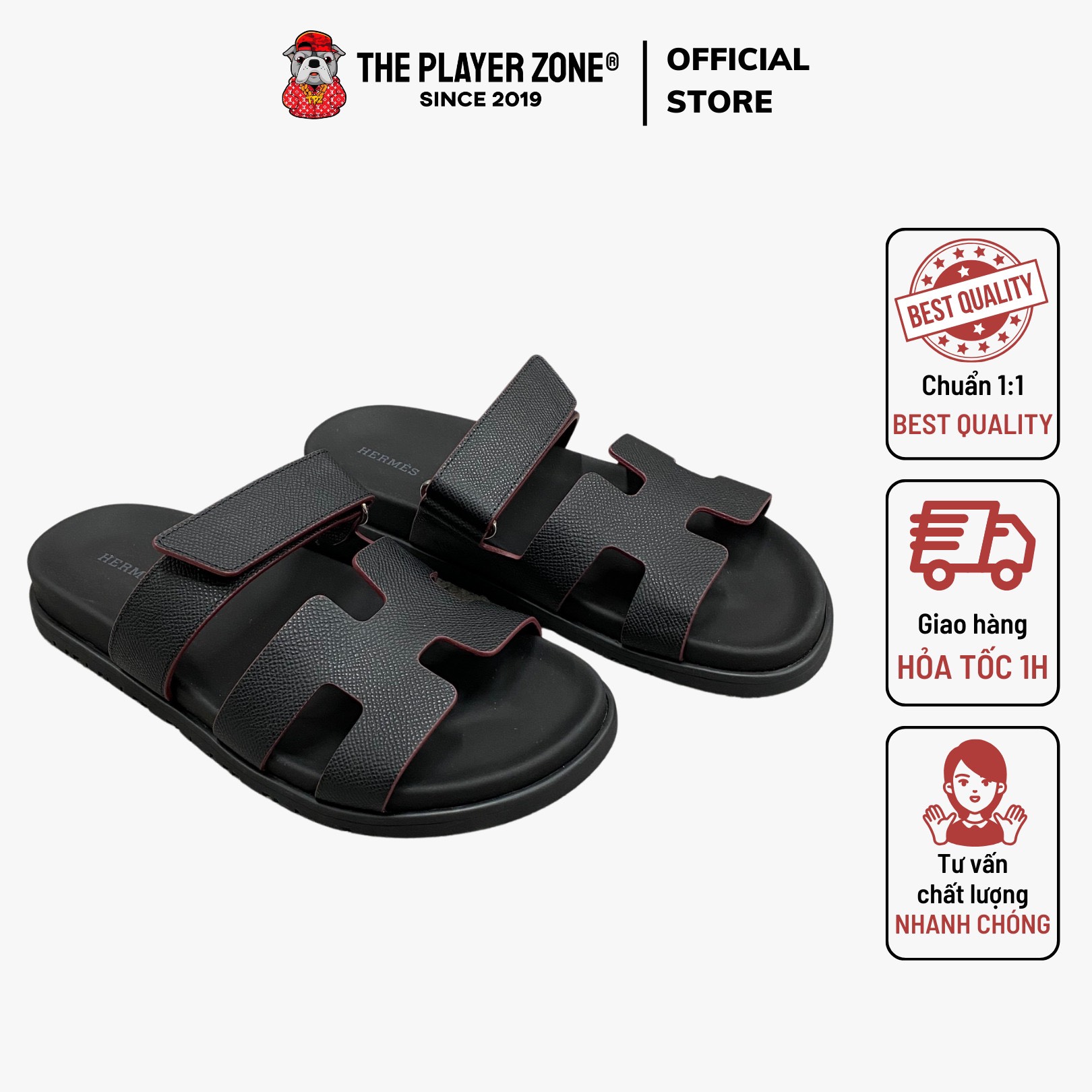 Dép Hermes Chypre Sandal Da Epsom Sần Đen Viền Đỏ (Form Nữ) The Player Zone