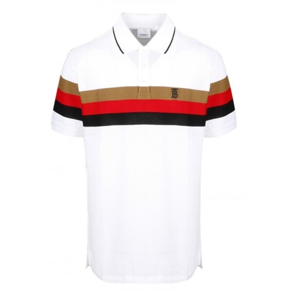 Tạm gác những chiếc áo đơn sắc thì mẫu áo phối màu này của Burberry sẽ là item mới lạ trong tủ đồ của bạn đấy. Vẫn là dáng áo cơ bản, nhưng trên nền trắng được phối 3 sọc màu thương hiệu của Burberry, tạo điểm nhấn cho chiếc áo. Đồng thời, logo thương hiệu cũng được thêu tỉ mỉ ở phần ngực áo.