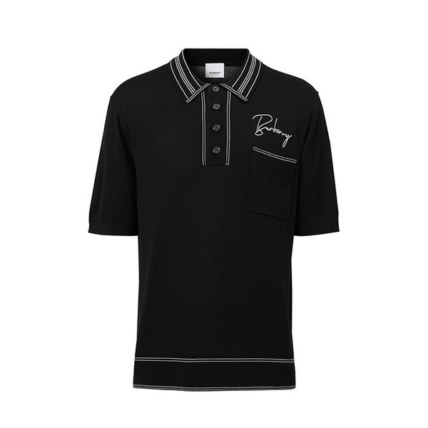 2. Áo Polo Burberry logo-Embroidered Silk-Blend Knitted Màu Đen