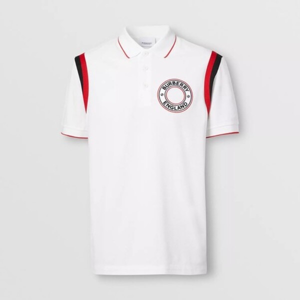 4. Áo Polo Burberry Logo Graphic Appliqué Cotton Piqué Polo Shirt Màu Trắng