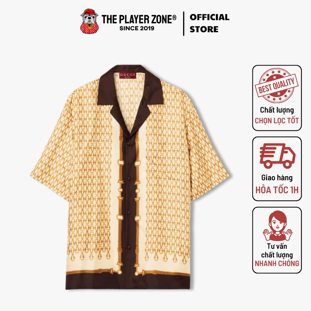 Áo Sơ Mi Printed silk twill bowling shirt - beige The Player Zone