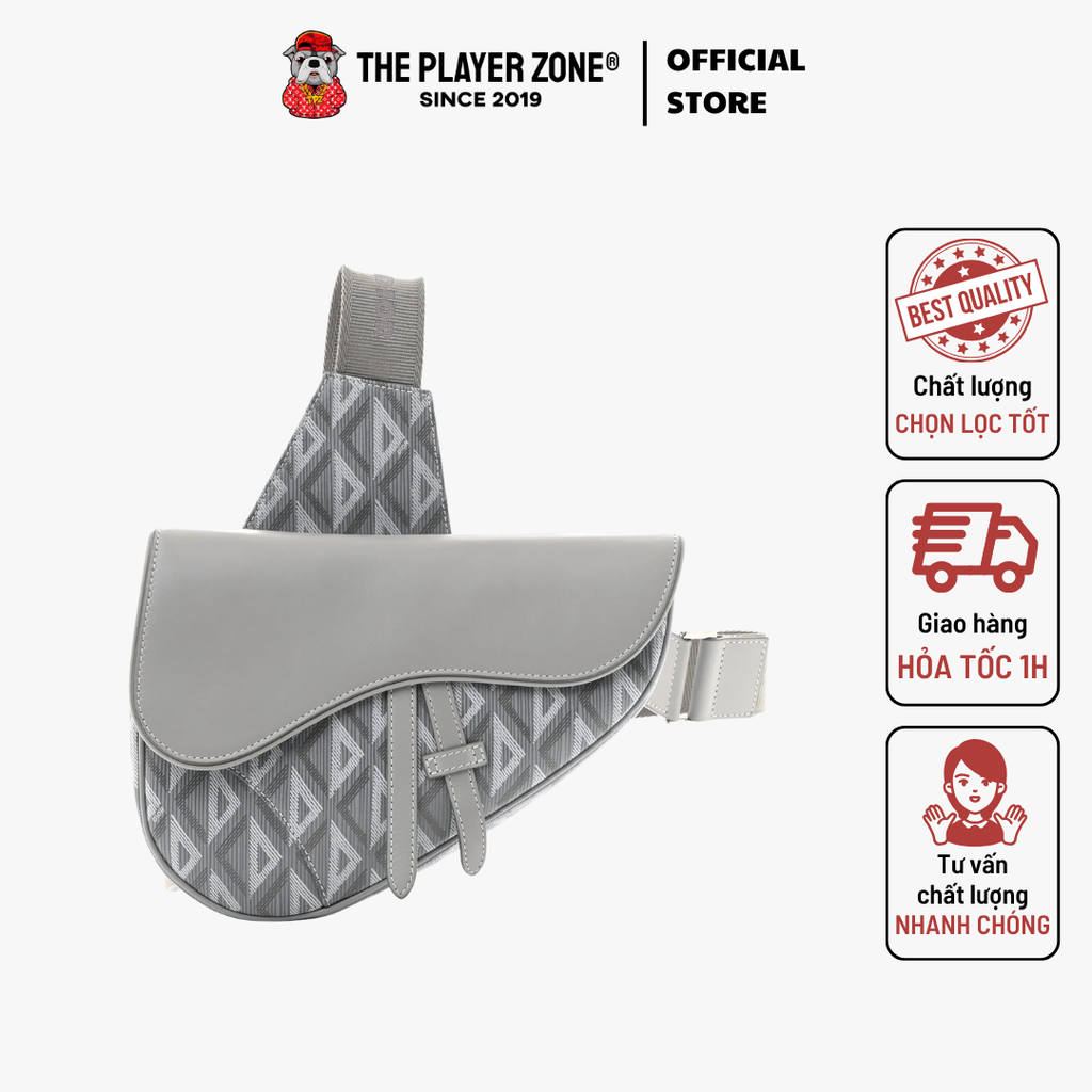 Túi Dior Coated Canvas Calfskin CD Diamond Mens Saddle Bag - Gray The Player Zone